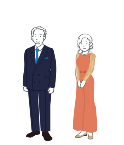 ☆国際的にイブニングドレスは肌を見せるタイプが正礼服ですが、事前に両家で相談するとよい。