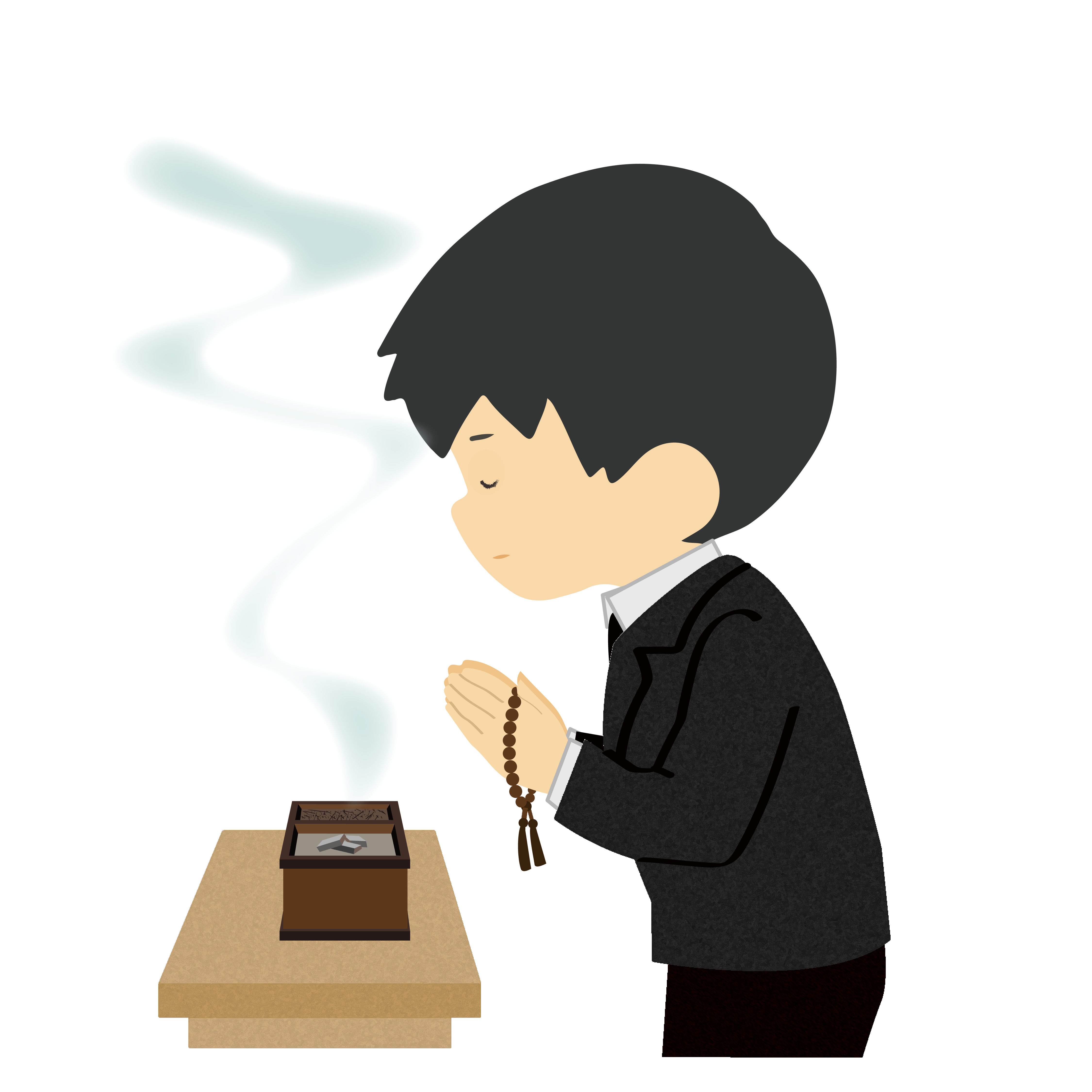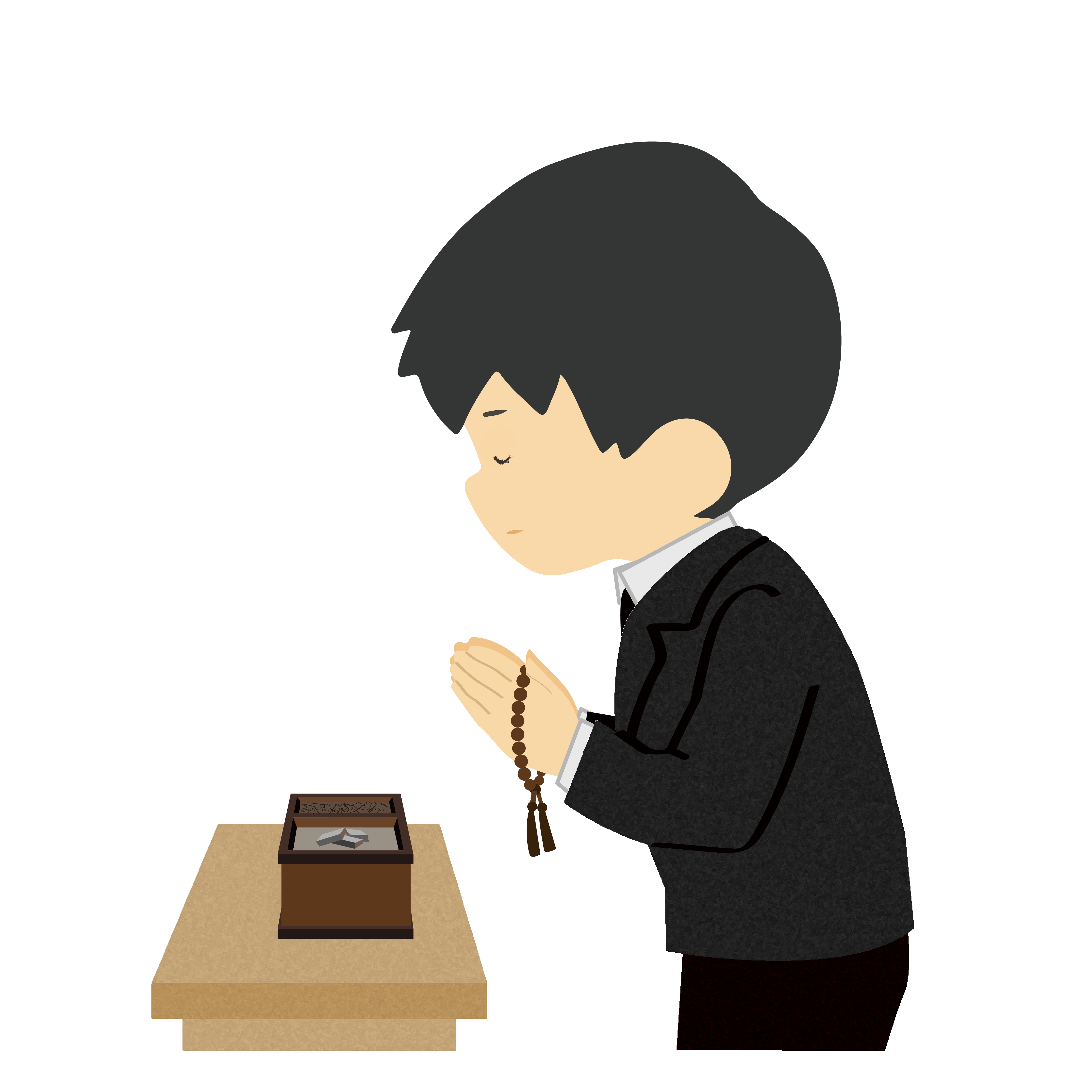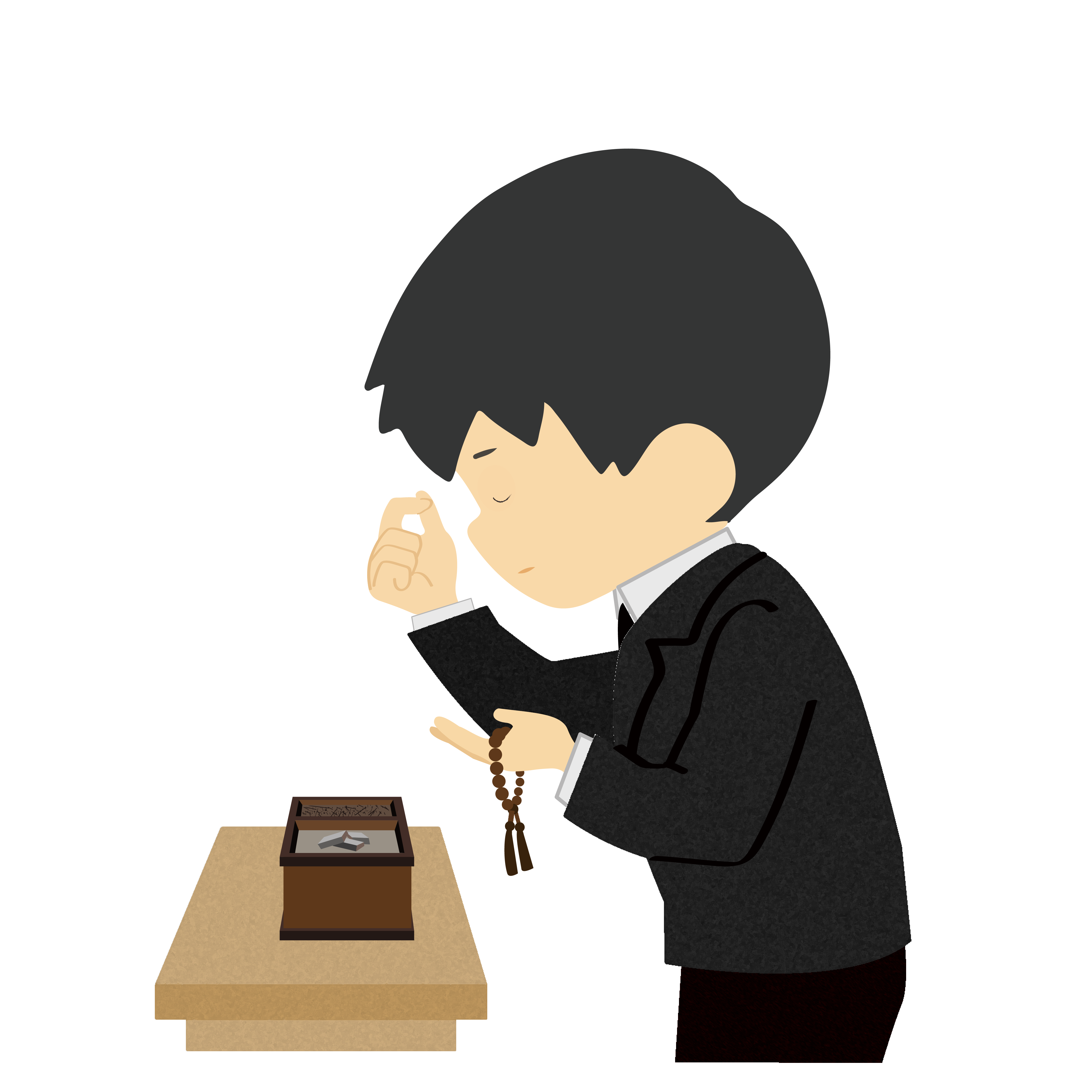 数珠を左手に持ち、ご遺族に一礼する。焼香台に進み、遺影に一礼し、合掌礼拝。