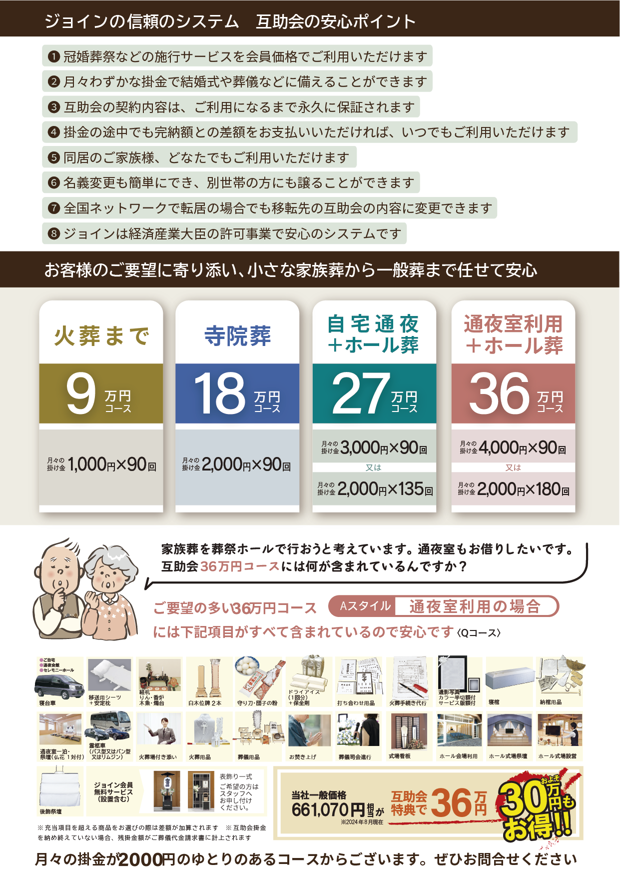 ジョインは充実したサービス内容で冠婚葬祭をサポートします。