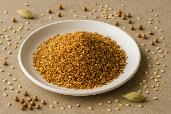自家製デュカスパイスは、アーモンドやごま、クミンなどのナッツとスパイスを丁寧に組み合わせた、エジプト発の風味豊かなスパイスミックスです。