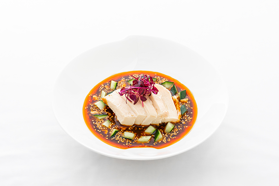 深みのある甘辛いソースに、沙悟浄のカッパをイメージしたきゅうりを添えてしっとりとした鶏肉を涼やかに仕立てました。