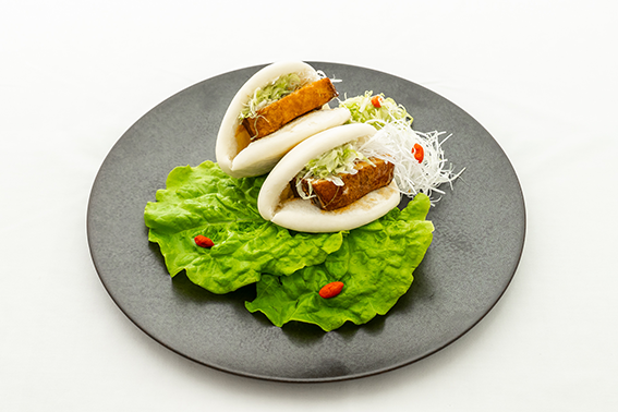 食いしん坊・猪八戒ゆかりの地、江南省の特有の風味を取り入れた、東坡肉風の角煮を挟んでお召し上がりいただきます。