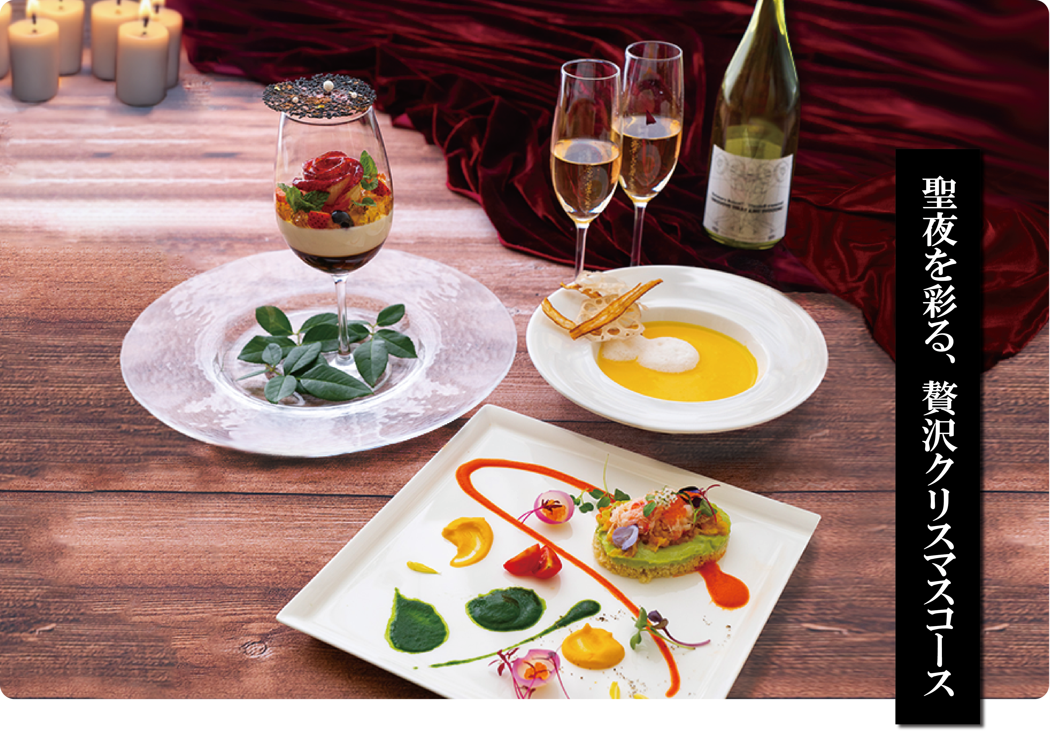 毎年大好評のコンフェッティ クリスマスディナーが二日間限定でお召し上がりいただけます。季節の食材をふんだんに使い、前菜からデザートまで華やかに仕上げています。トナカイチップを使用したかわいらしいアミューズや、厳選食材を贅沢に使用したメインディッシュ、パスタやデザートなど、聖夜のひとときを彩る贅沢なコースです。大切な方と過ごす、特別な夜にどうぞ。