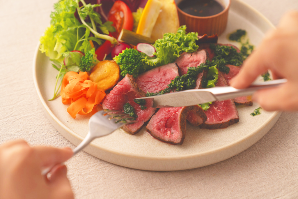 (牛ロース・和風ステーキソース・サルサヴェルデ・グリーンサラダ)
