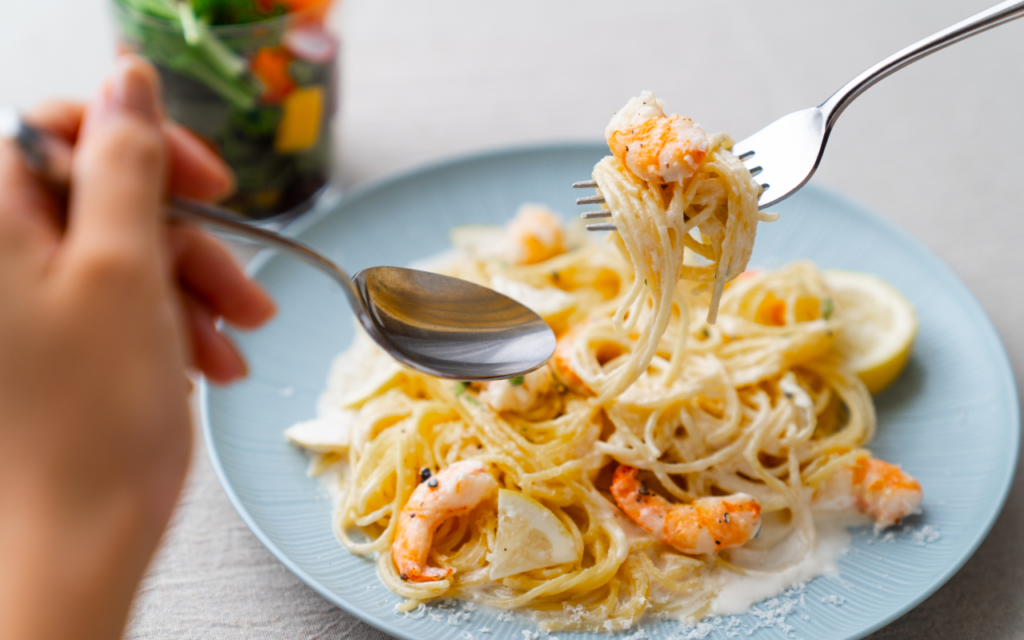 こだわりパスタ 海老とレモンクリームのリングイネカップサラダ付き 1,749yen