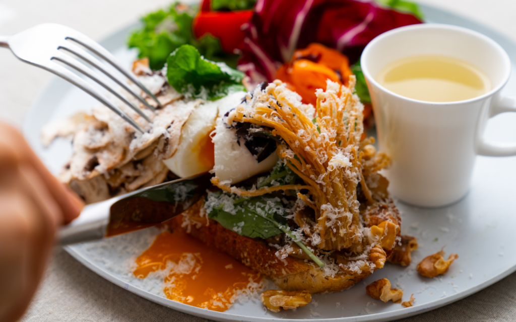 オープンサンド ベーコンエッグ×舟形マッシュルーム 1,452yen